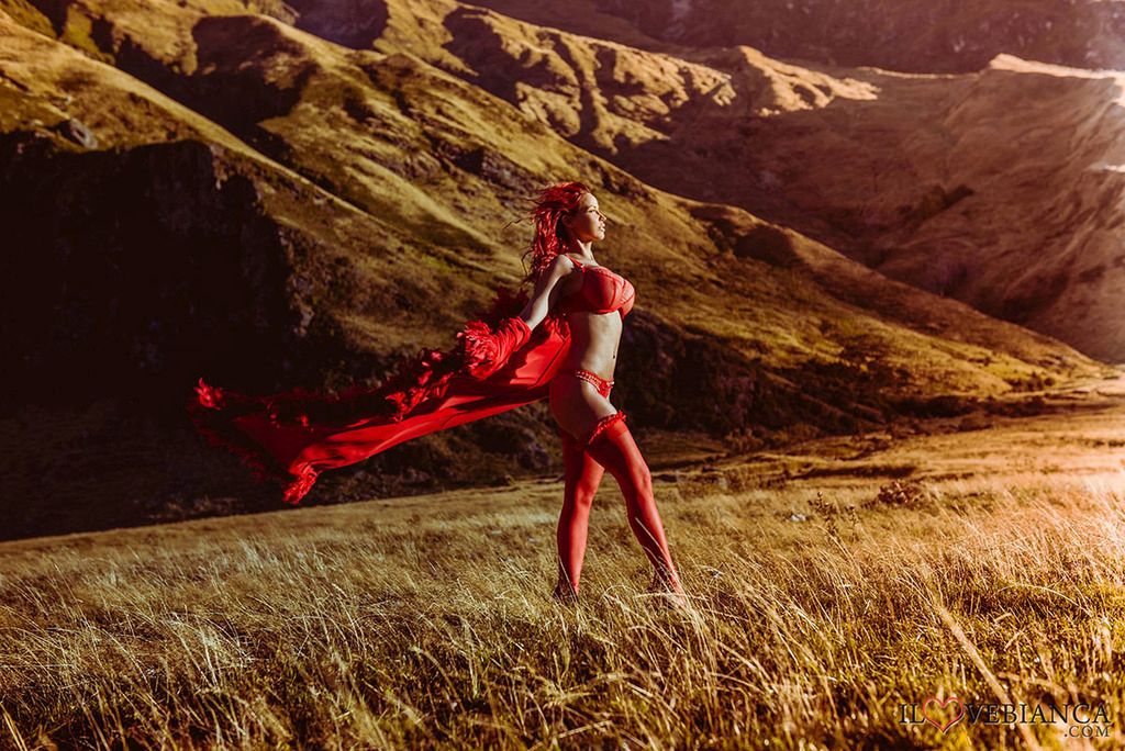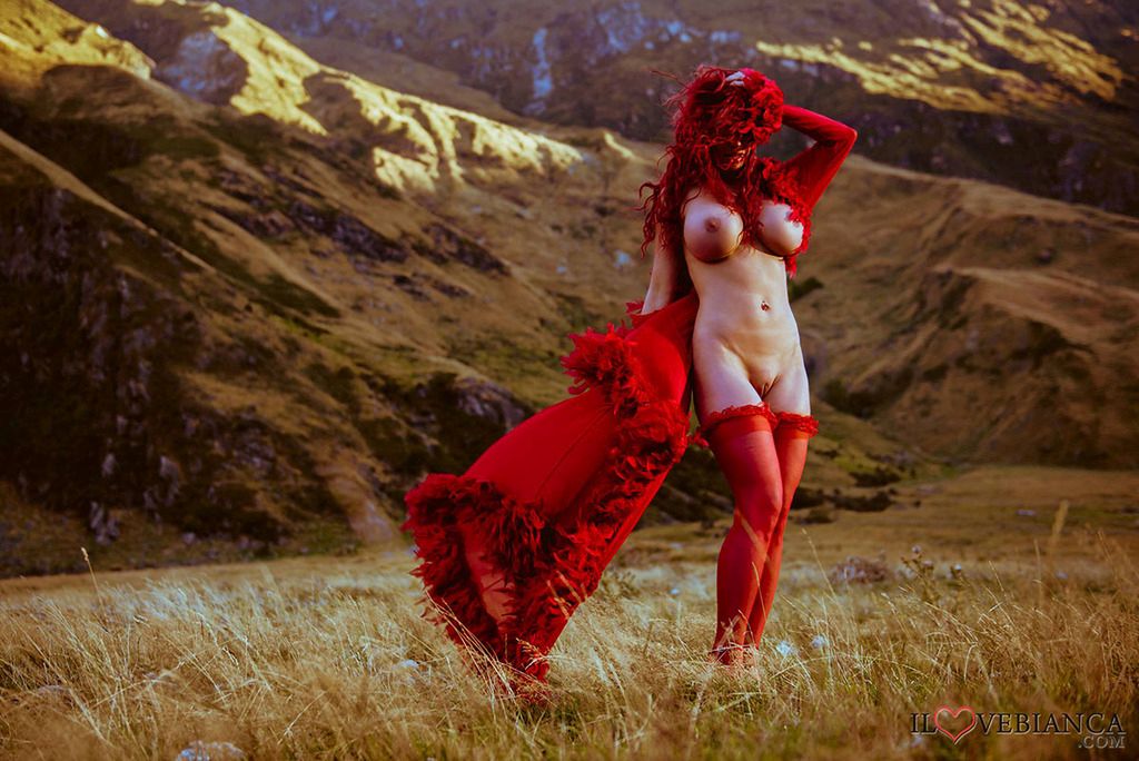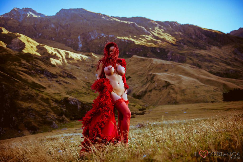 Bianca Beauchamp is een geile dame met grote borsten. Ze heeft al vaker de pagina’s van Seks Met gevuld met haar sexy aanwezigheid en dat zal ze in de toekomst ook blijven doen. Wat te denken van die ene keer toen ze als een uitermate sexy Marilyn Monroe door het leven ging of die ene keer dat ze haar grote borsten liet zien bij het zwembad. Memorabele herinneringen aan een mooie vrouw en het wordt alleen maar beter. Dit keer heeft ze uitgepakt met een prachtig rood lingeriesetje en heeft ze de natuur opgezocht. Uiteindelijk eindigt ze naakt tussen de bergen en dat is een erotische belevenis.