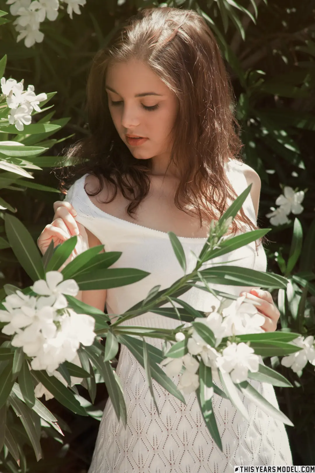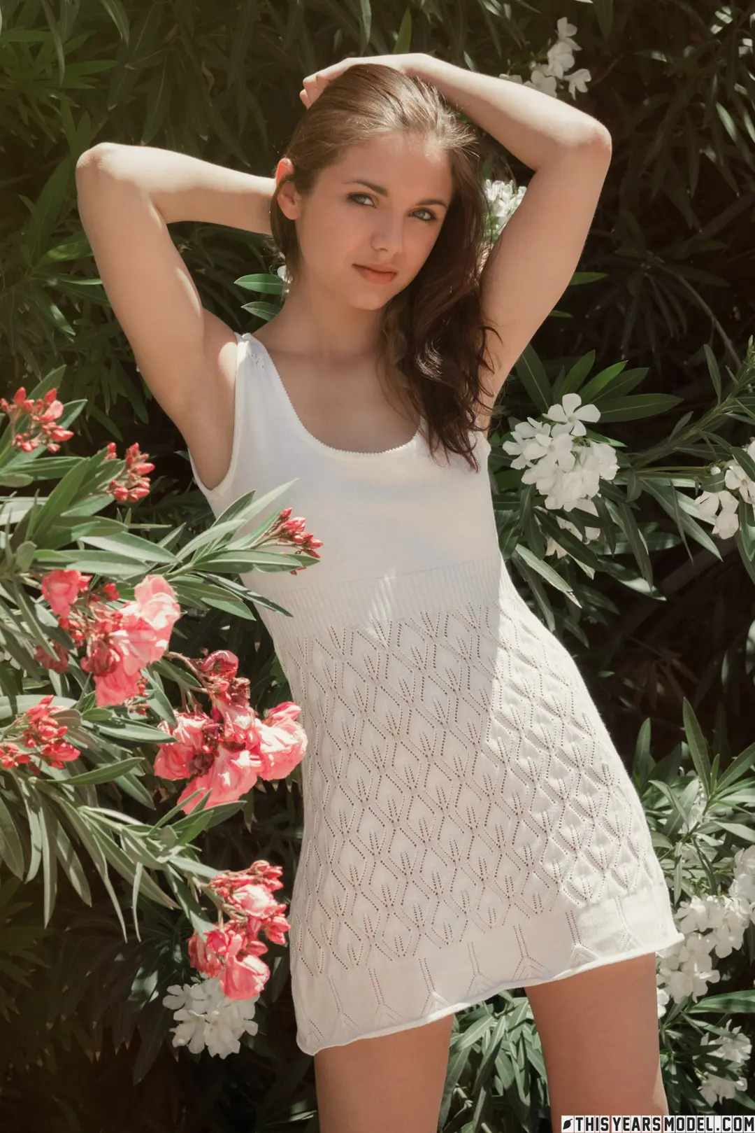 Waar Darien Grey rondloopt is het waarschijnlijk al lente, want de bloemetjes staan in bloei en zij gaat buiten naakt. De knappe brunette heeft een sexy zomerjurkje aan, waardoor ze alleen al onze onverdeelde aandacht heeft. Dat blijft zo, want uiteindelijk gaat ze helemaal naakt en genieten we intens van haar mooie strakke lijf. Ze heeft kleine borsten, een lekker kontje en ze kijkt aardig onschuldig de camera in. “Too Cute for Porn” heet dat, want ze ziet er ook nog eens onschuldig en lief uit.