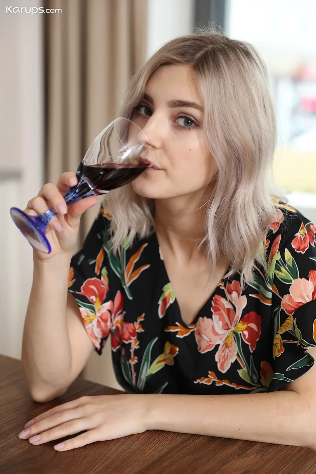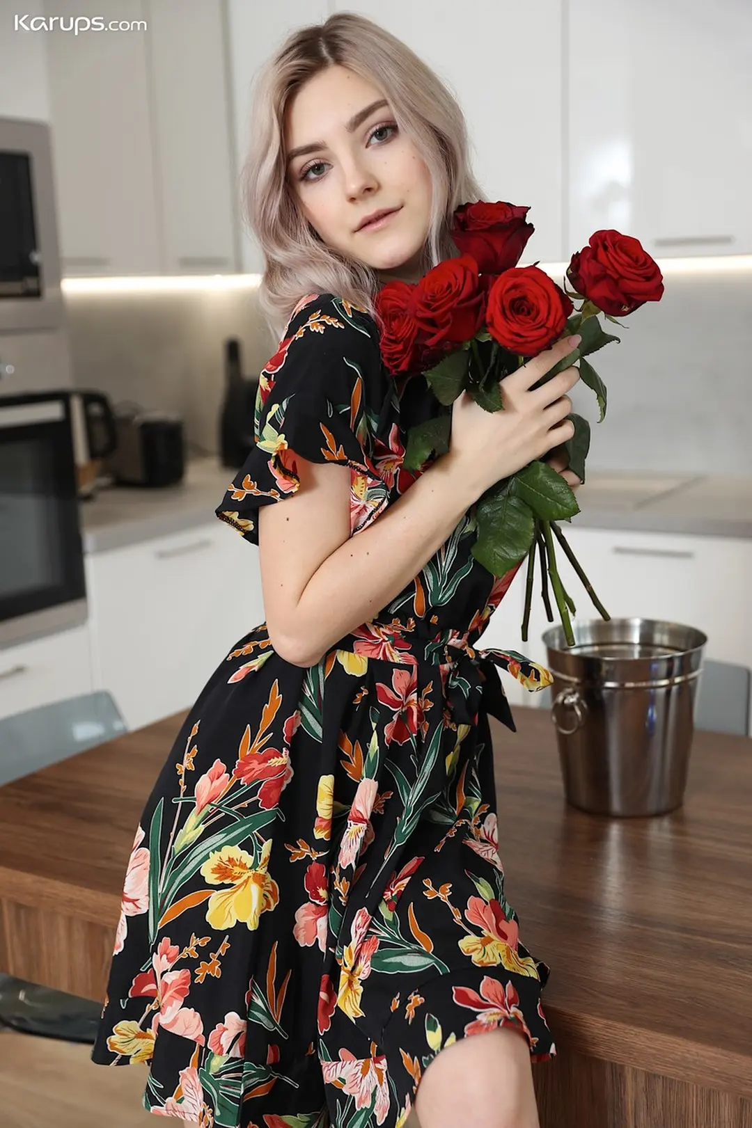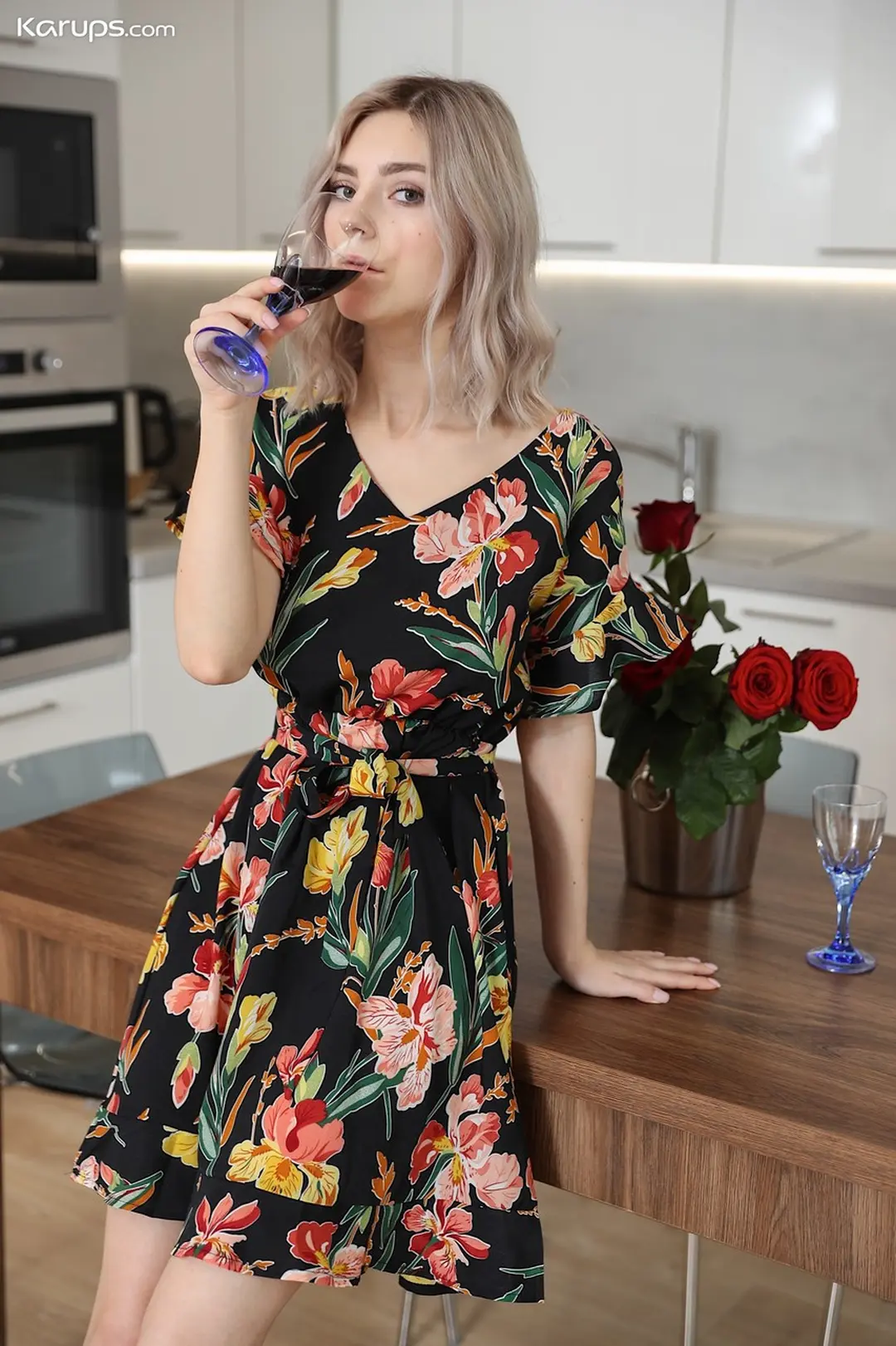 Eva Elfie is een lekker ding met blond haar, grote borsten en algeheel geil. Ze ziet er op de foto’s zeer verleidelijk uit, eerst in een sexy zomerjurkje en al snel helemaal naakt. Ze had waarschijnlijk een romantische dag in gedachten gezien de rode rozen, de rode wijn en de twee glazen. We denken dat ze die rode rozen van haar vriendje heeft gekregen en ze allebei klaar waren om aan de romantische sex te beginnen. Hij moest echter eerst even naar de wc en op dat moment ging zijn telefoon, die voor Eva op tafel lag. Ze keek onbewust en zag een berichtje voorbij komen waarin stond: