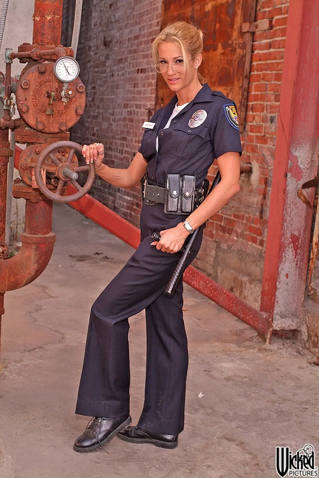 Zoals te verwachten onder een nieuwsbericht op Seks Met hebben we een naakte vrouw gevonden, die verder niets met het nieuwsbericht te maken heeft. De enige overeenkomst is dat ze een politieuniform aanheeft en die uittrekt. De dame in kwestie is Jessica Drake en we kunnen ons heel goed voorstellen dat als die naast je in de politieauto zit en over je harde wapenstok begint, dat je de auto desnoods op de vluchtstrook van een drukke snelweg zet en haar stevige neukt, terwijl ze over de motorkap gebogen staat. Als je dan toch ontslagen gaat worden, dan maar goed.