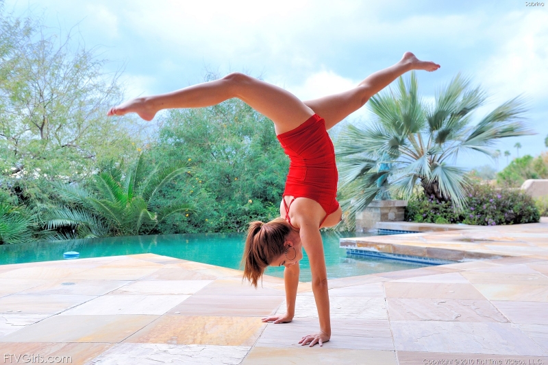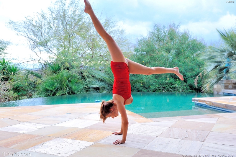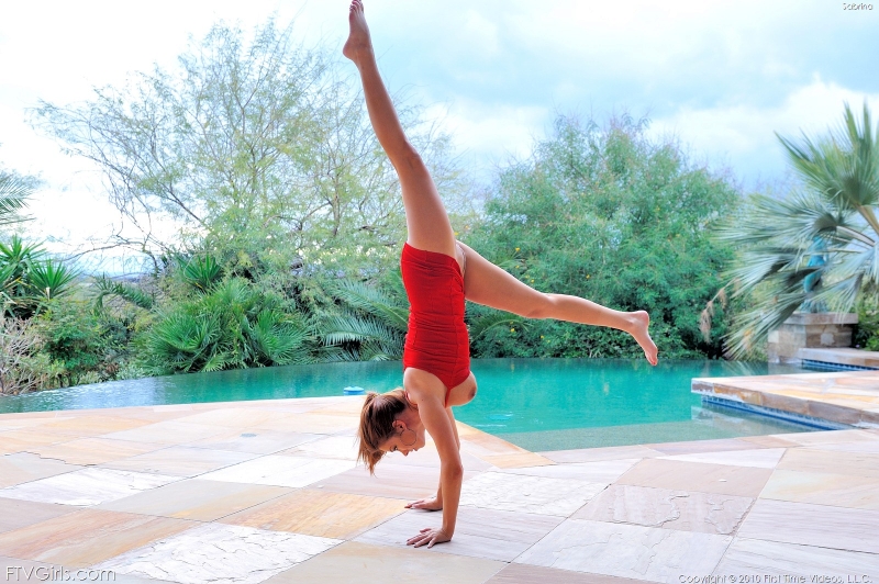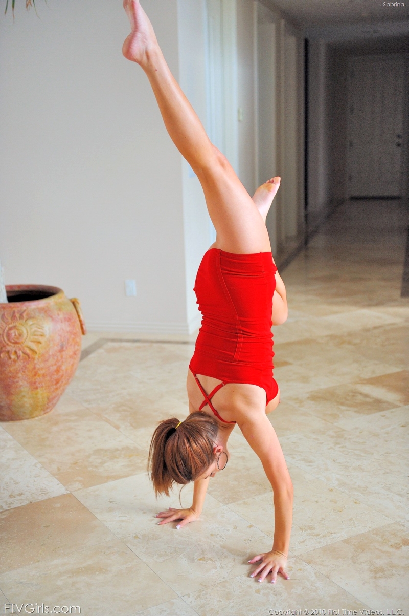 Nu is een vrouw die geen ondergoed aanheeft en een spagaat doet altijd sexy. Sabrina doet diezelfde spagaat alleen doet zij het vanuit een handstand. Kwestie van er inhangen en gaan. Dat er inhangen moet overigens geen enkel probleem zijn bij Sabrina want het is een verschrikkelijk lekker ding. Een heel fijn kontje, mooie benen en de grote tieten waar we het eerder al over gehad hebben.
