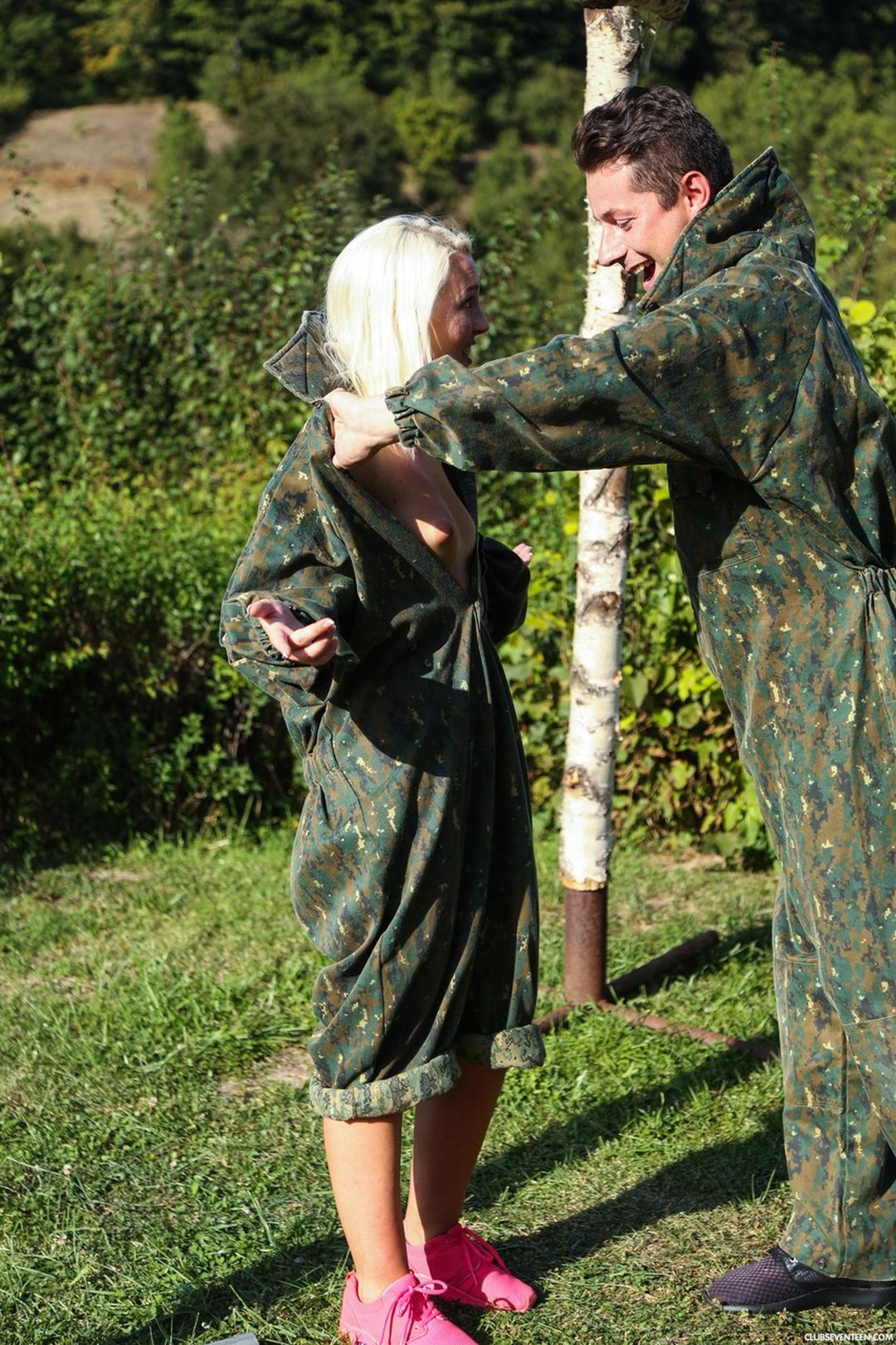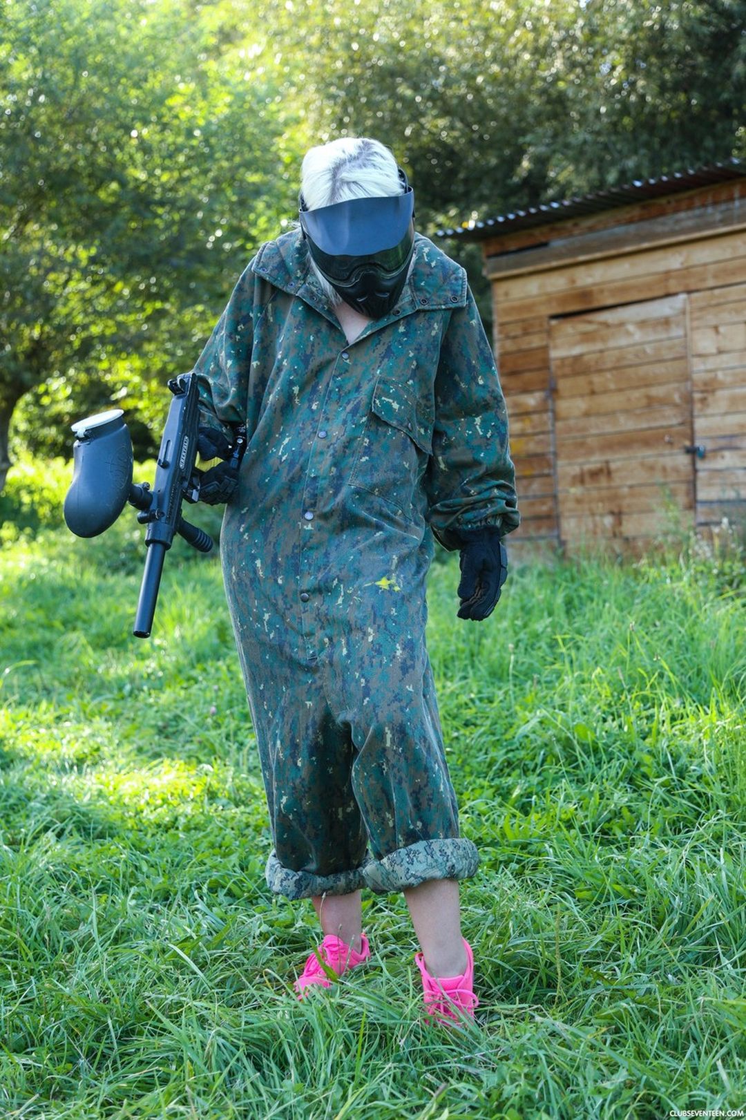 De hoogste tijd om voor wat duidelijkere buitensex te zorgen. Een beetje nazorg kan nooit kwaad, dus dat doen we met een koppel dat net aan het paintballen is geweest en vervolgens aan sex gaat doen. Je moet de opgebouwde adrenaline natuurlijk ergens kwijt. Overigens is dat niet echt moeilijk, want onder één van de overalls zit een geil blondje, die het zo te zien niet erg vindt waar ze sex heeft, als ze maar sex heeft. Misschien is een tripje naar Vancouver iets voor dit koppel.