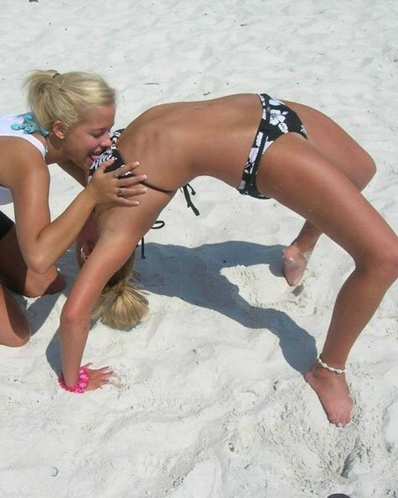 Dan zijn er ook nog vrouwen die elkaar erg lief vinden of opgewonden raken van al het bloot dat om ze heen te zien is en dat op elkaar botvieren. Ook helemaal niets mis mee, zeker niet als ze nog eens helemaal naakt zijn. We begonnen er al mee, het strand is mooi.