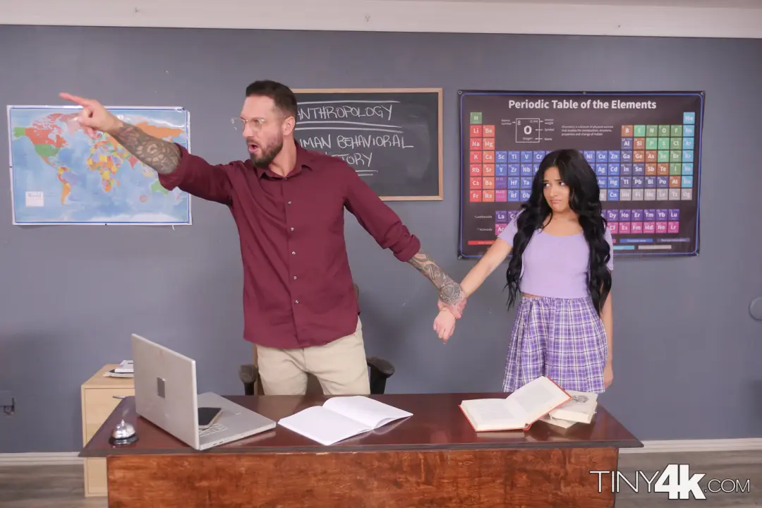 Een studente heeft sex in het klaslokaal, met haar leraar