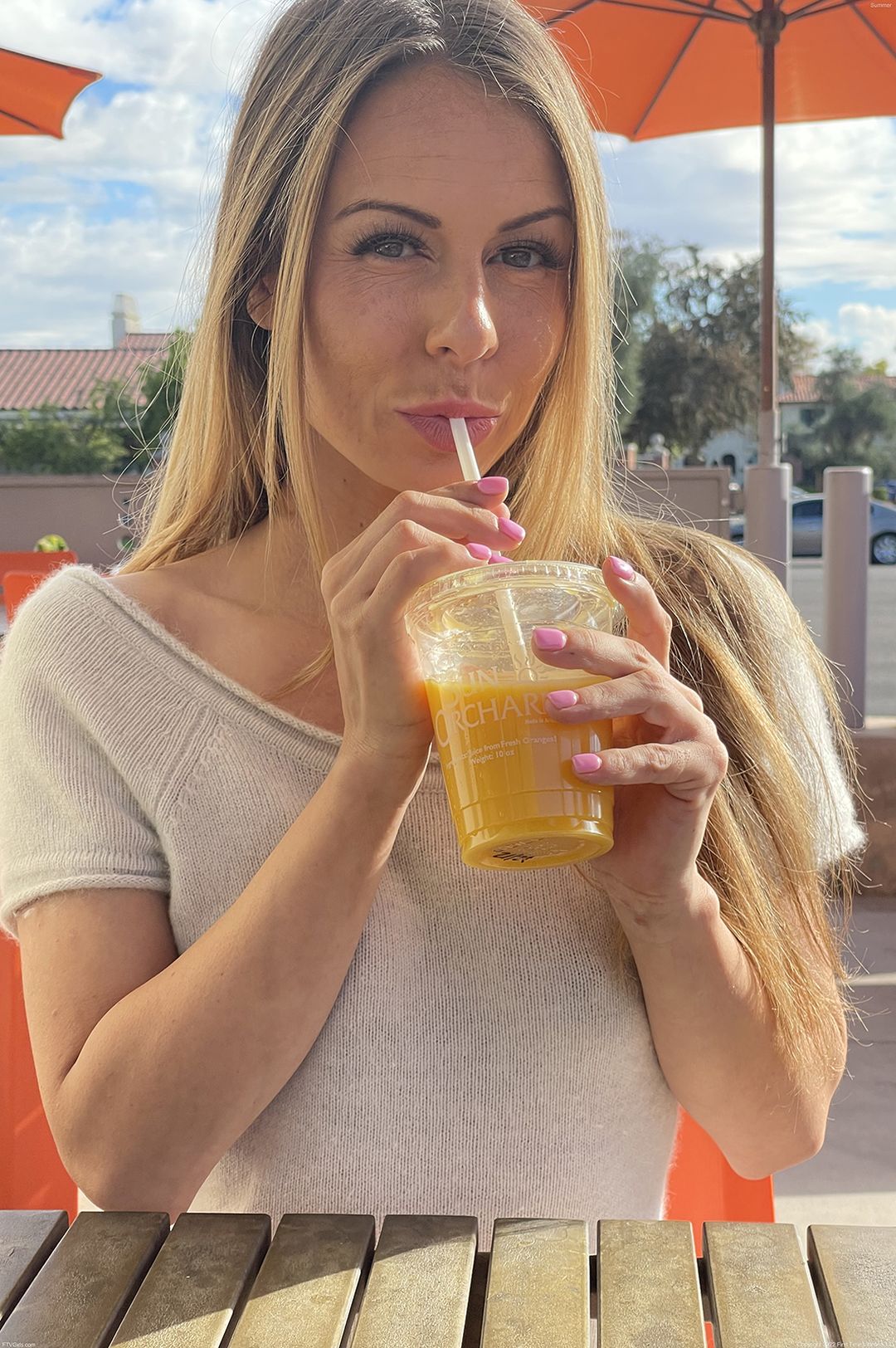 De mooie blonde Summer had een klein probleempje toen ze wilde gaan masturberen. Ze was namelijk die middag naar een terrasje gegaan in een kort strak jurkje, zonder dat ze ondergoed aanhad. Ze had de man die tegenover haar zat aardig lopen teasen, want ze had haar benen wijd gedaan, zodat hij zonder al teveel problemen naar haar kutje kon kijken.