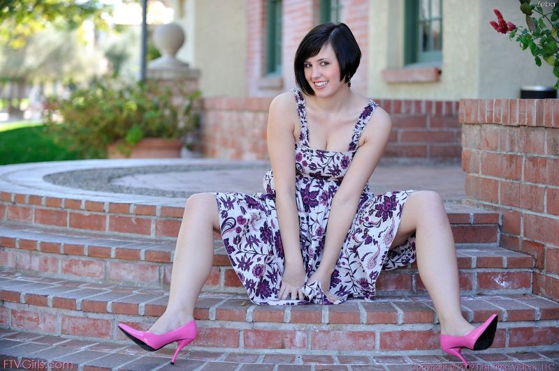 Deze zwartharige mooie vrouw mag dan in eerste instantie wat verlegen overkomen, terwijl ze toch heel erg sexy in een zomerjurkje is, maar dat is na een paar foto’s als sneeuw voor de zon verdwenen. Eerst krijgen we haar mooie tieten topless te zien waarna we, nog een paar foto’s verder, ook van haar kutje mogen genieten.